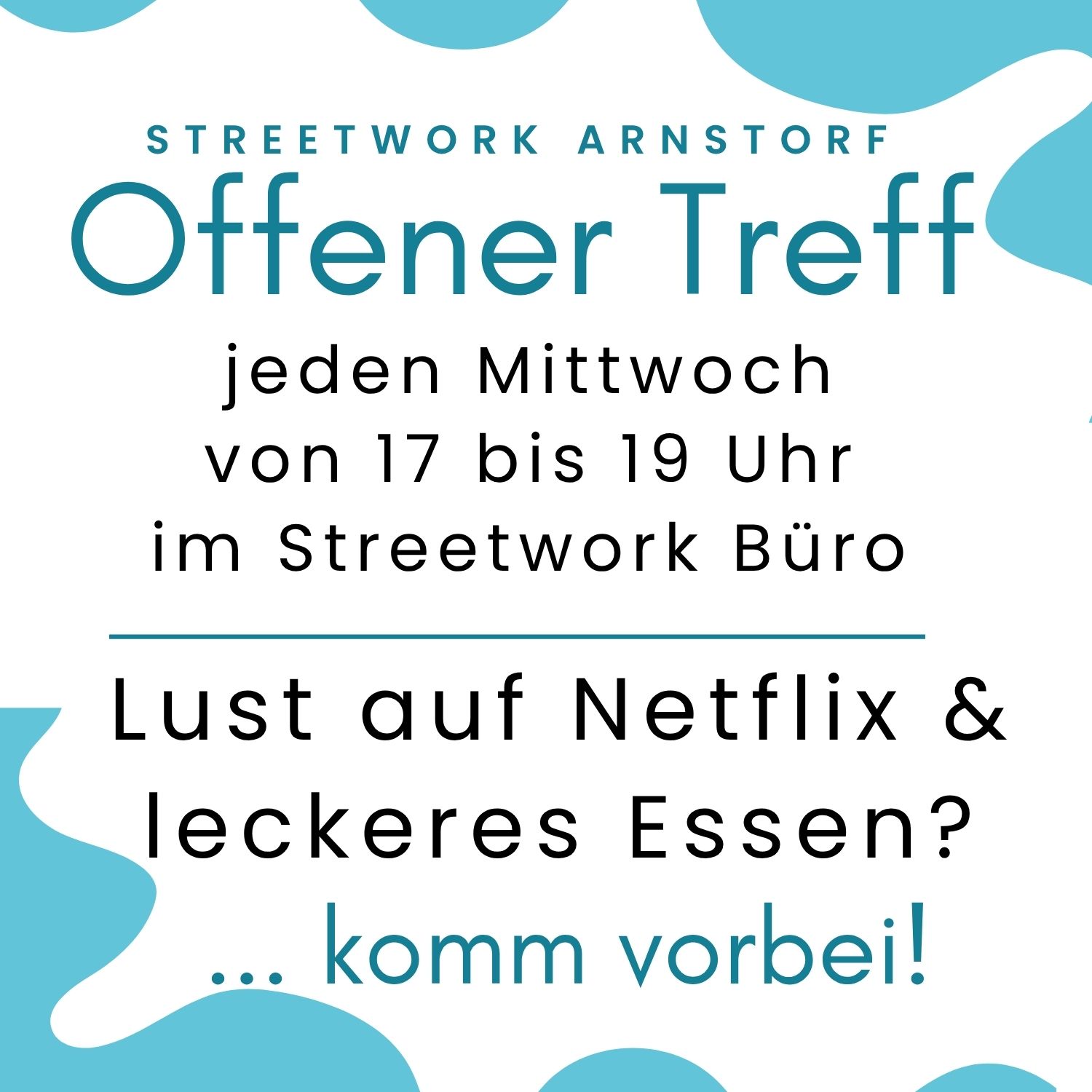 jeden Mittwoch von 17 bis 19 Uhr lade ich euch herzlich zum Offenen Treff im Streetwork-Büro Arnstorf ein.