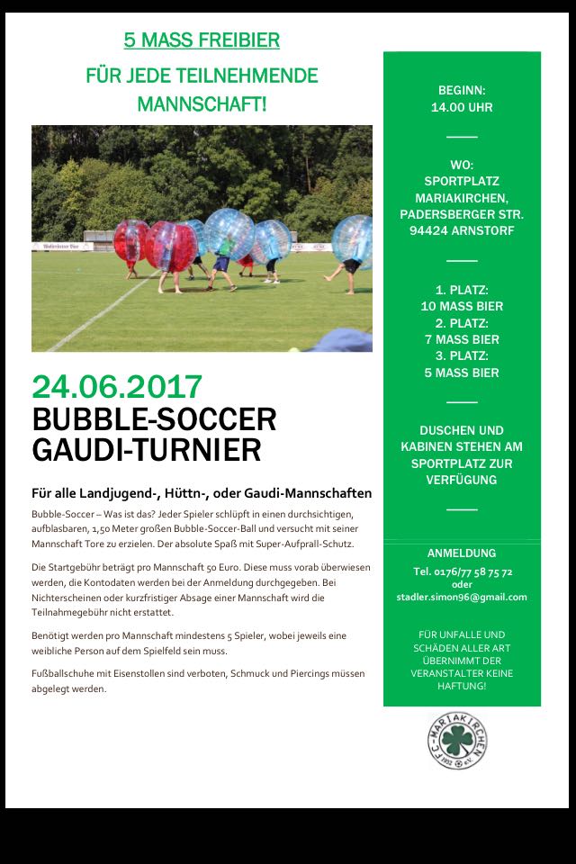 - Zwar findet in Mariakirchen in diesem Jahr kein Open-Air wie in den letzten Jahren mehr statt, dennoch kommt es für den Verein gar nicht erst in Frage, dieses bereits in jedem Kalender vorgemerkte Wochenende ohne Veranstaltung vorübergehen zu lassen. Mit dem neu erarbeiteten Konzept des "Schlosspark-Volxsfestes", startet der FC Mariakirchen erstmals in eine dreitätige Veranstaltung. Egal ob jung oder alt, jede Generation kommt bei dieser Veranstaltung voll auf ihre Kosten.